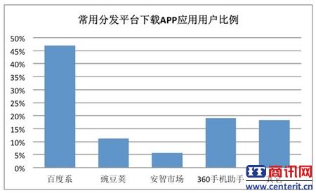 百度系品牌已经深受用户的认可。在“你最常用哪个分发平台下载APP应用”的用户调查中,有47%的用户选择了百度系位居第一,选择360手机助手的有19%居第二位,另有12%的用户选择了豌豆荚,选择安智市场的有5%,而选择其它的占16%。