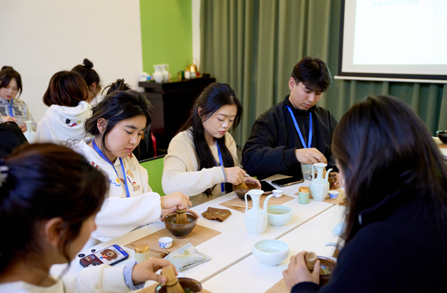 在中国茶叶博物馆与龙坞茶镇,师生们走进茶园,亲身体验了西湖龙井茶的炒制技艺与宋代点茶技艺。