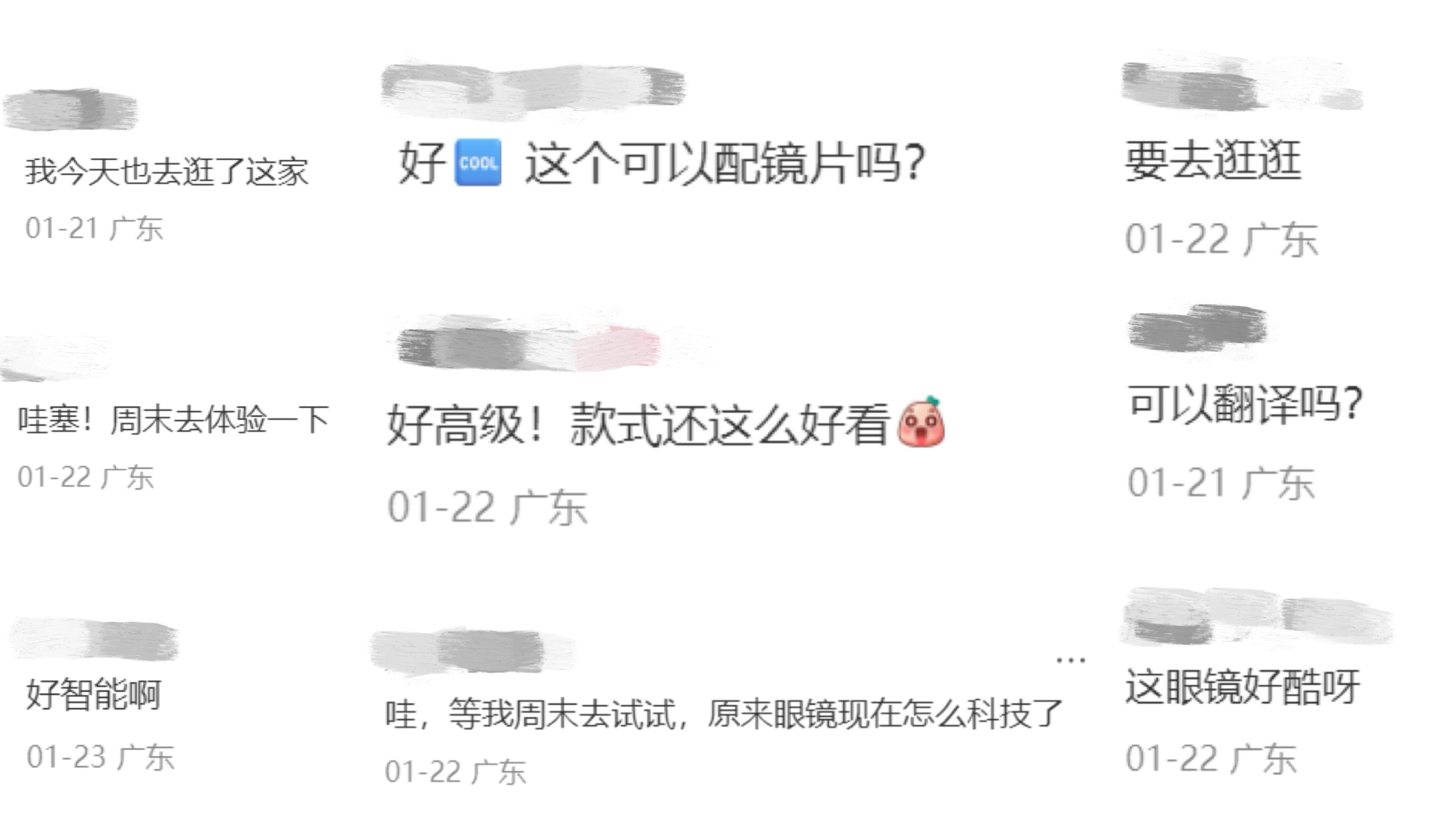 面对这些普遍的选购困惑,有热心网友留言推荐道:“去深业上城那家博士眼镜智能眼镜概念店啊!我上周刚去,从夸克、界环到雷鸟,拥有多品牌产品,还能模拟场景功能!”