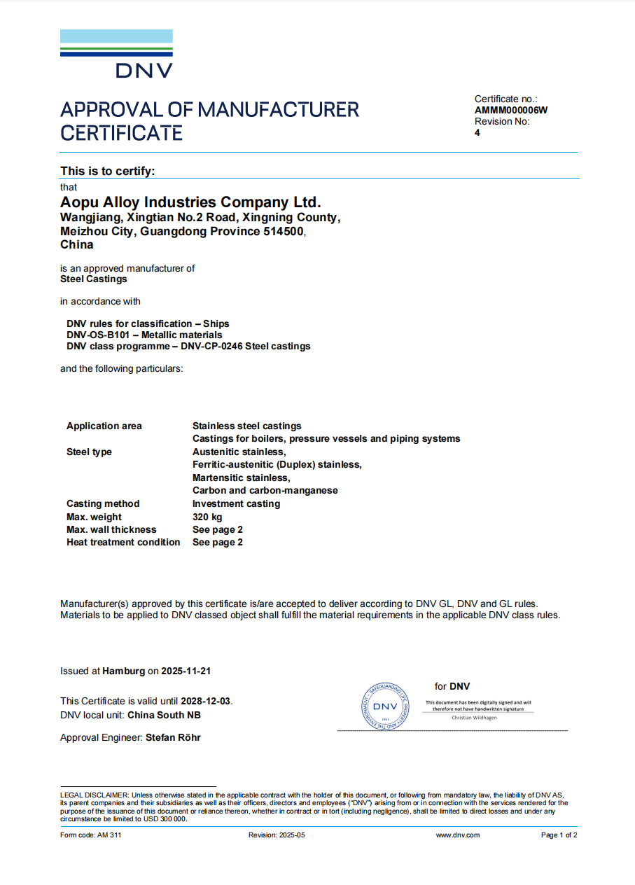 316不锈钢精铸螺旋桨OEM:不同厂商的材料与工艺选择
