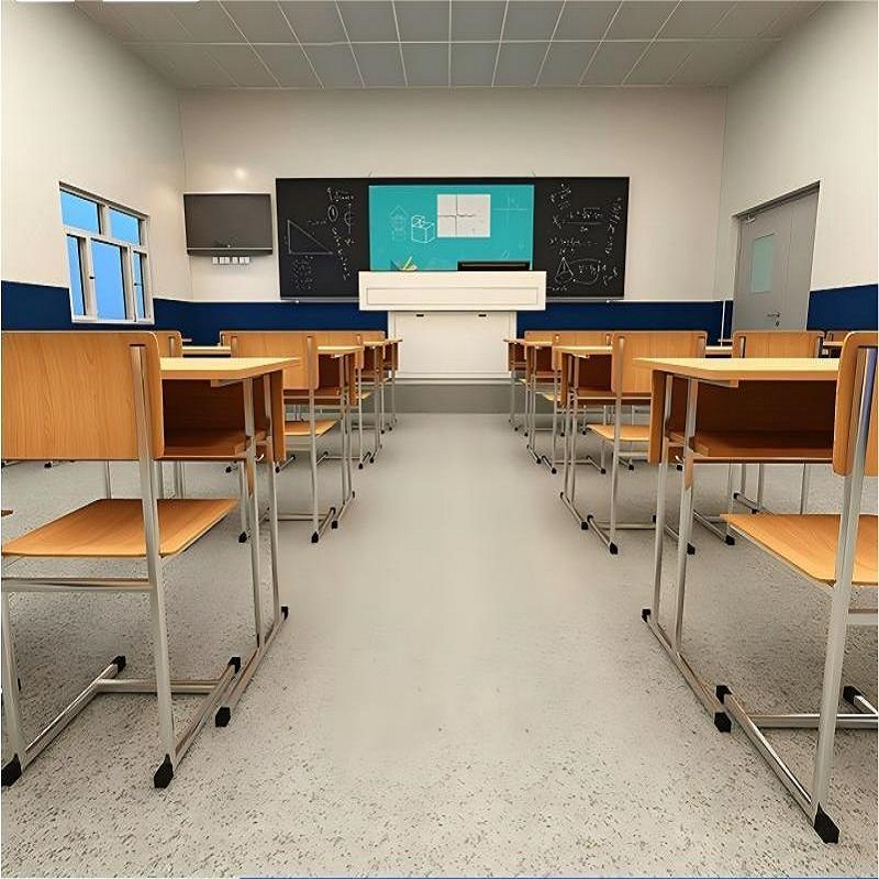 复合地板以木质纤维为基材,纹理接近天然木材,多用于校园办公区域,对潮湿环境适应性相对一般。学校塑胶地板以PVC为基材,防水耐磨性能更突出,可适应教室、走廊等高频率使用场景。