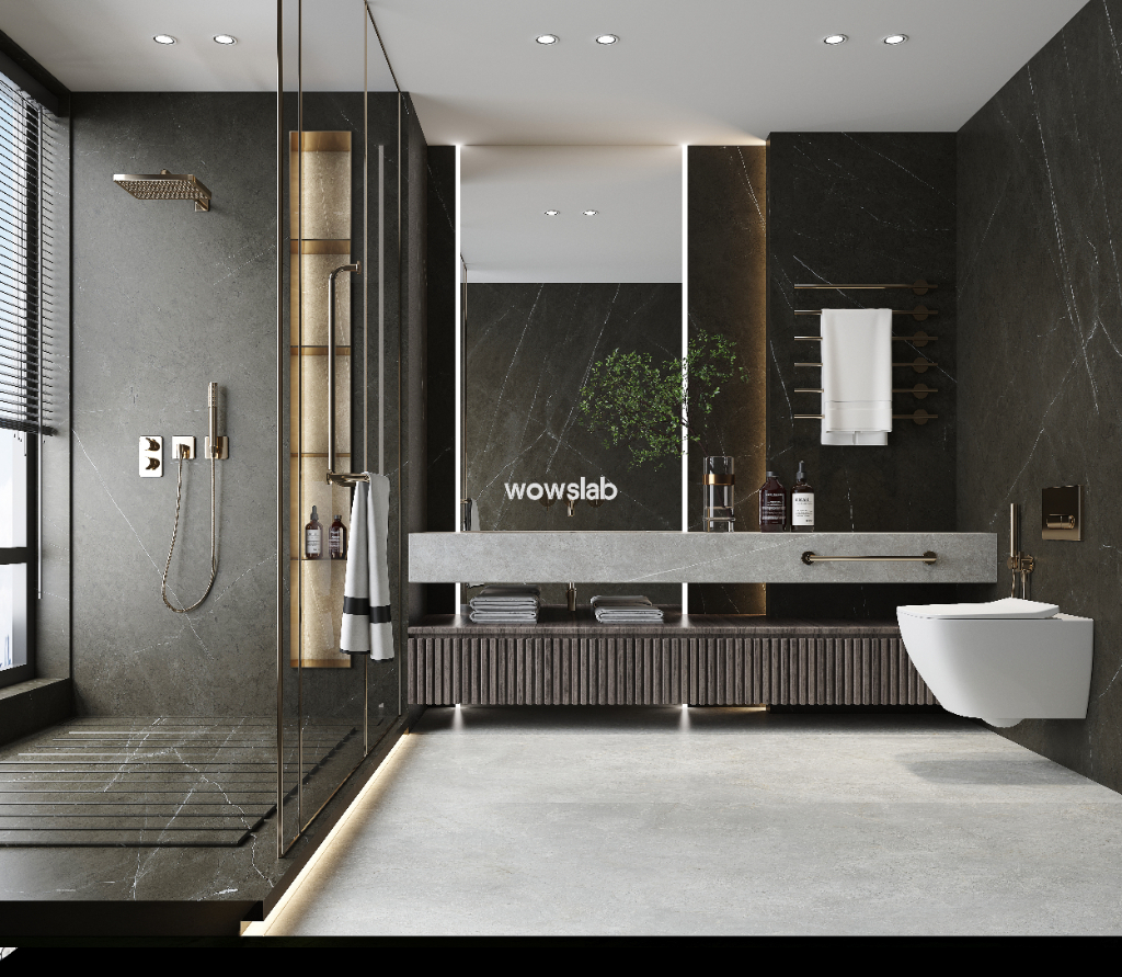 目前,华岩品致岩板WOWSLAB已经拥有涵盖理石岩板、石纹岩板、水泥岩板、肌理岩板、艺术岩板五大系列共260+标准SKU,其中“徽州印象”、“寒江雪”、“黑石涧”、“西砂”、“卡尔顿灰”等设计获得著作权,“岩板(璀璨艺术)”获得外观设计专利。产品覆盖3MM-12MM四大厚度、十大规格,广泛应用于家居、商业、厨房、卫浴等不同空间,为设计师与消费者提供了激发空间搭配灵感的多尺寸、多风格选择,推动岩板行业从“规格革命”迈向“美学升级”的新阶段。建立了从岩板切割复合到空间铺贴的一站式技术体系,依托数字化仓储实现72小时极速交付,产品覆盖全球30+高端市场,国内拥有200+核心经销商,成功应用于香港丽晶酒店、广州保利高端楼盘、中亚银行大厦、珠海行政服务中心等多个国内外标杆项目。