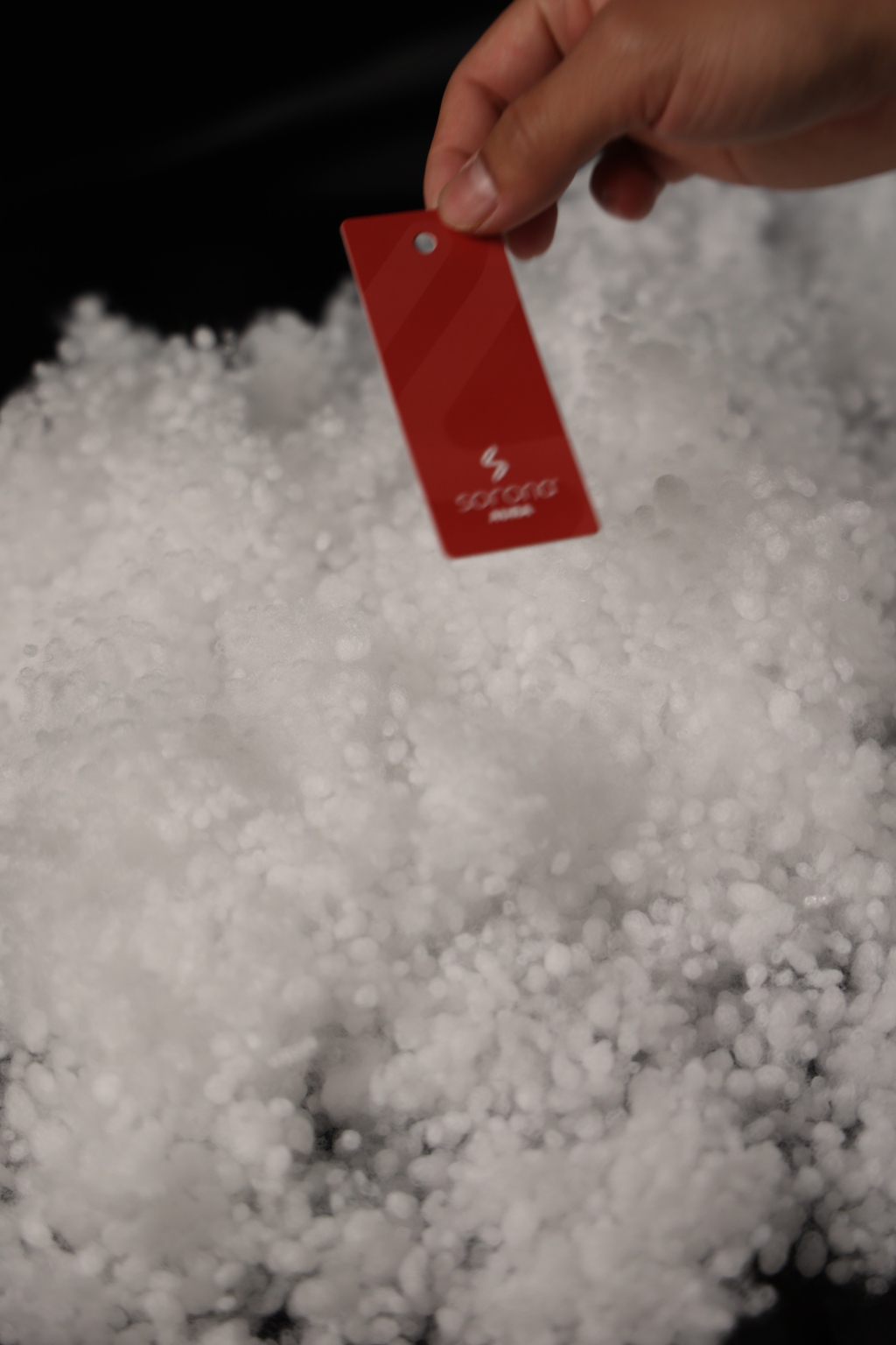 在产品性能上,众享实业的杜邦Sorona®生物绒具备恒温锁温、抗结团抗塌陷、母婴级安全低敏、轻量化透气等核心优势,干燥环境保暖性媲美800蓬羽绒,机洗50次仍不结团,弹性回复率超95%,通过OEKO-TEX® Standard 100 Class I母婴级认证,满足多场景的性能需求。