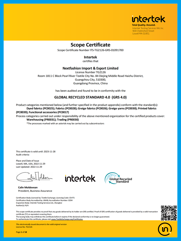 出口欧美市场的服装产品,对辅料的环保与社会责任合规要求极高,GRS、Oeko-Tex Standard 100等认证已经成为头部品牌的准入门槛。优秀工厂需要建立从原材料到成品的全流程质检体系,严格控制次品率,同时持有齐全的国际认证,可提供正规合规文件,帮助客户简化供应链审核流程,避免合规风险。